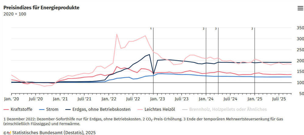 2025 Flugtickets (+19,4 %). Die Preise für Energie