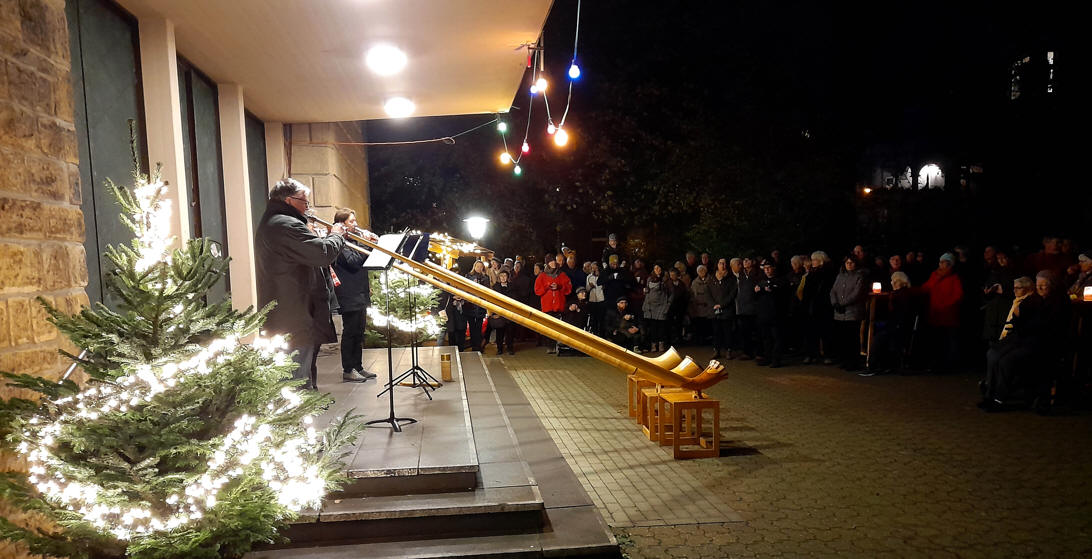 am gleichen Ort der Neudorfer Posaunenchor Adventliches zum Hören.