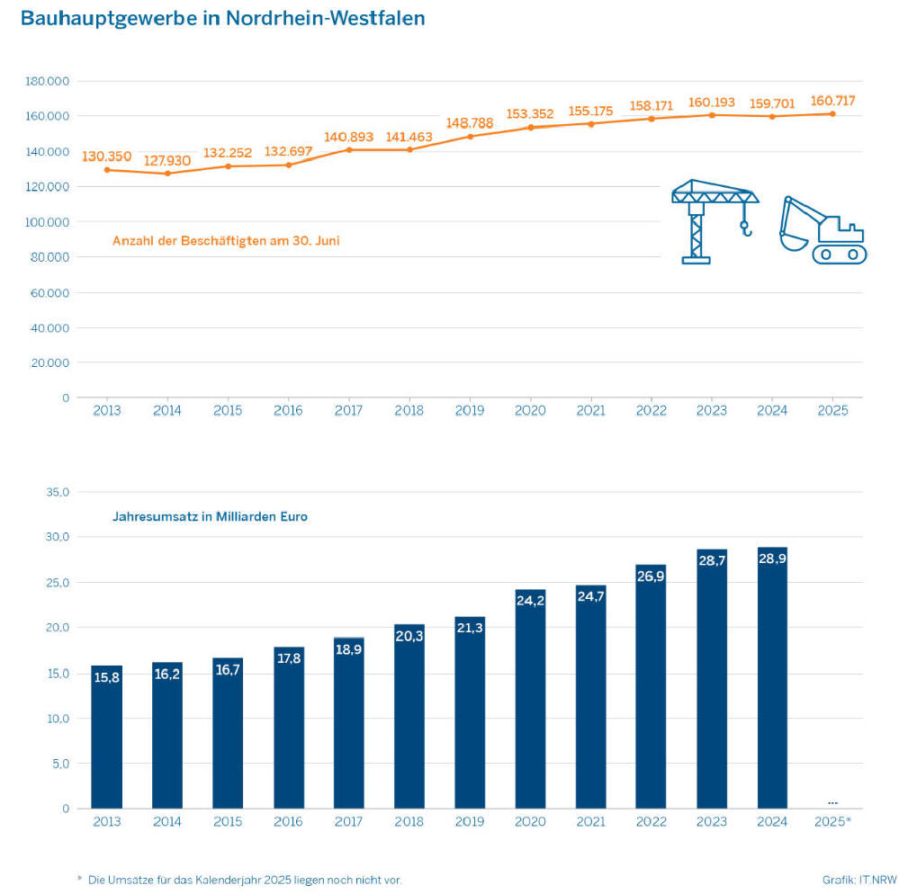 NRW-Bauhauptgewerbe: Weniger Betriebe in 2025, aber mehr