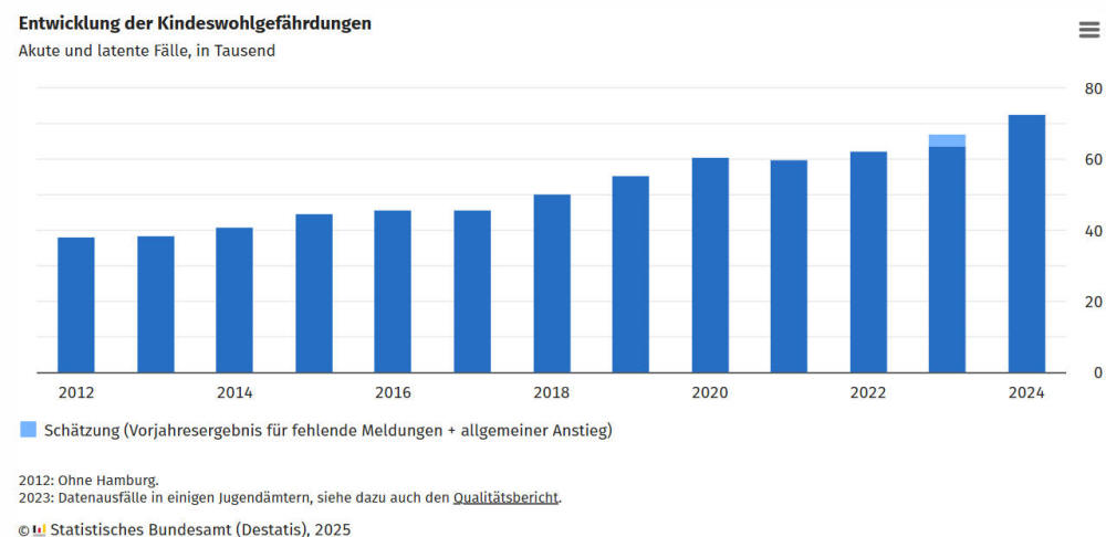 melden für 2024 rund 72 800 Kindeswohlgefährdungen • Behörden