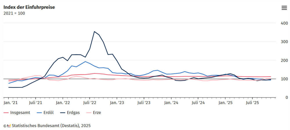 Energiepreise fielen die Importpreise im November 2025 gegenüber dem
