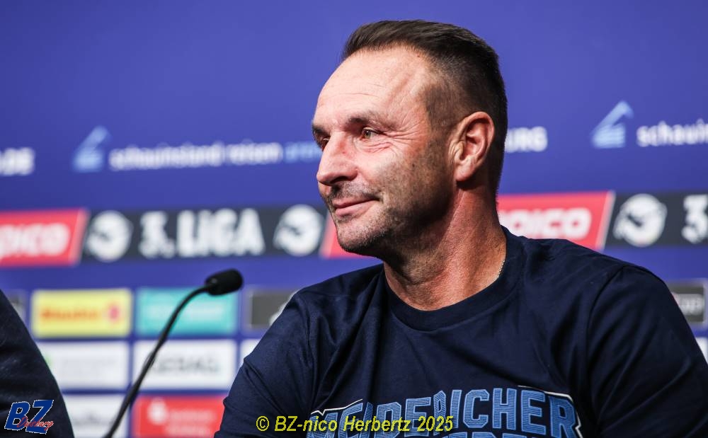 MSV-Trainer Dietmar Hirsch auf der Pressekonferenz vor dem Spiel.