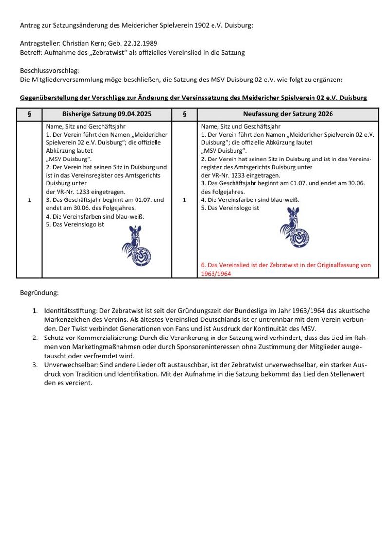 Satzungsänderung geschrieben und bitte die MSV-Vereinsmitglieder um