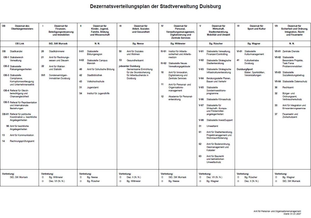Zuschnitten der Dezernate verfolgt die Stadt Duisburg das