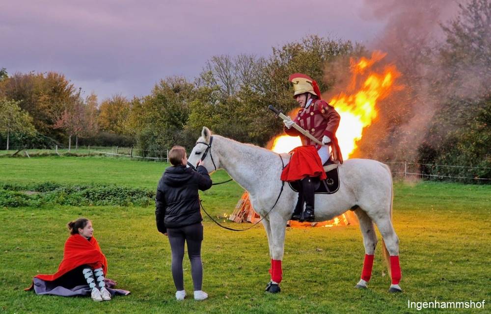 wird das Feuer aufgeschichtet und das Hofteam zündet das