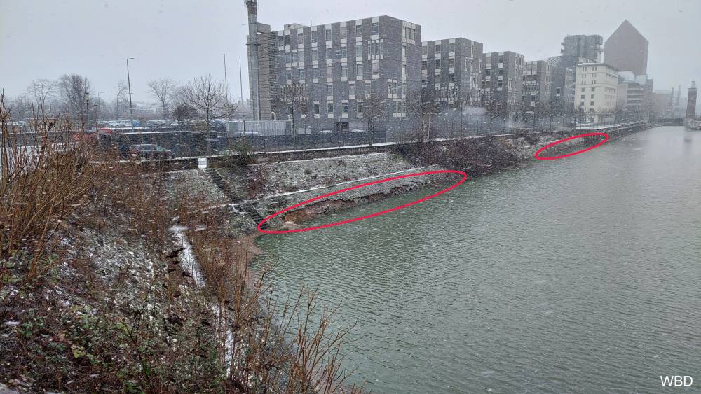 Innenhafens ist an zwei Stellen die Natursteinbefestigung