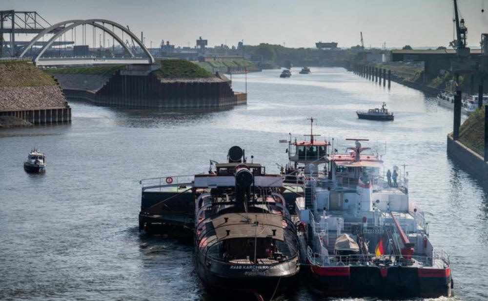 Oscar Huber“ wird in die Neue Ruhrorter Schiffswerft geschleppt. Foto: Tanja