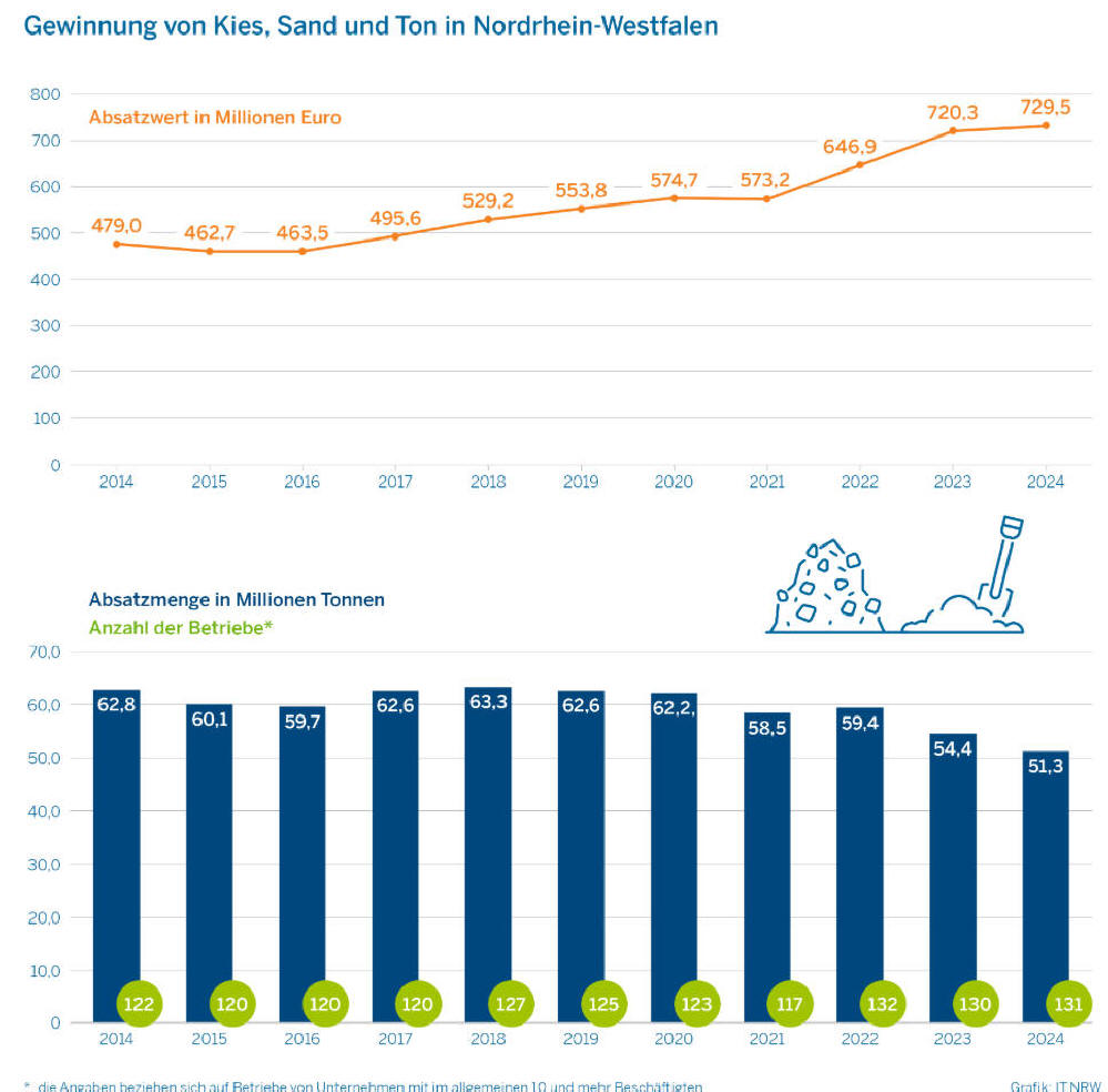 (29,6 %) der nordrhein-westfälischen Gewinnung von Kies, Sand und