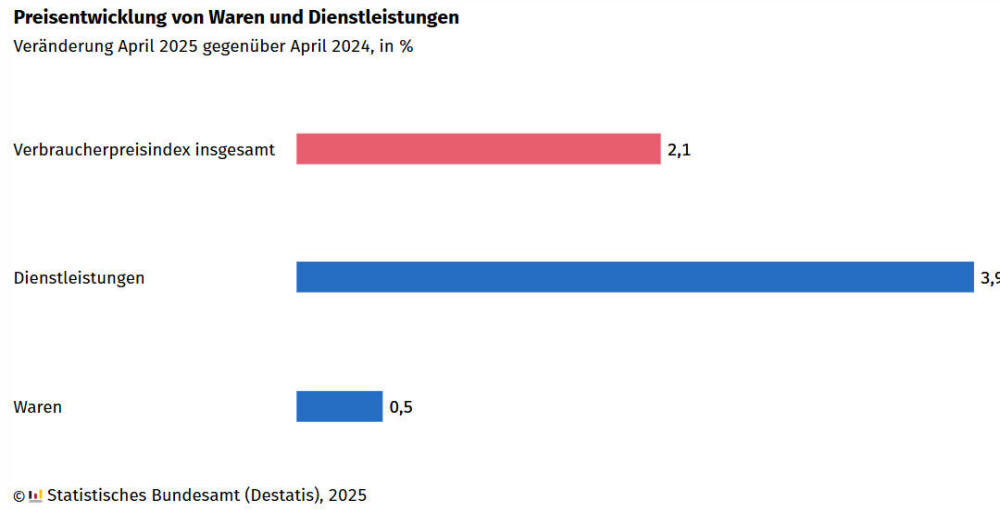 (-1,2 %). Waren verteuerten sich gegenüber April 2024 um 0,5 % Waren