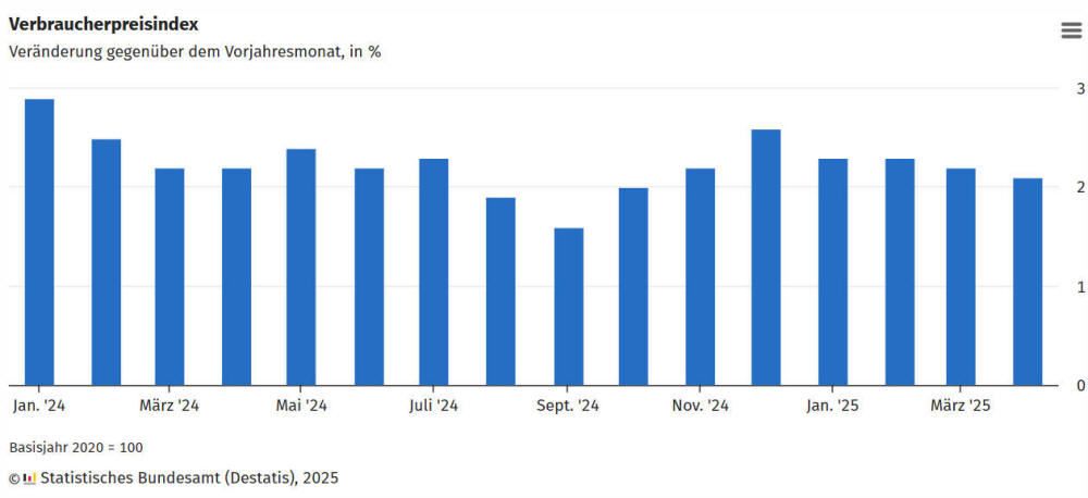 insgesamt verteuerten sich von April 2024 bis April 2025 um 0,5 %.
