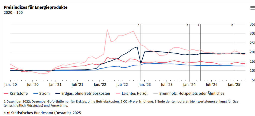 wurden Kraftstoffe (-0,8 %) und leichtes Heizöl (-2,5 %) günstiger.