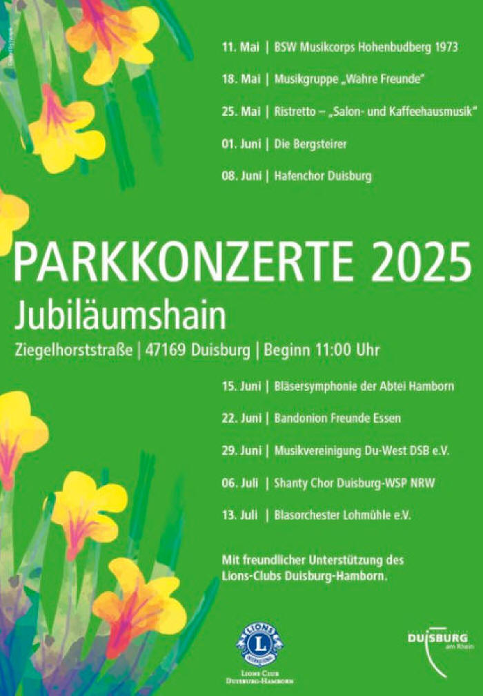 werden die Parkkonzerte wieder vom Lions Club Duisburg-Hamborn