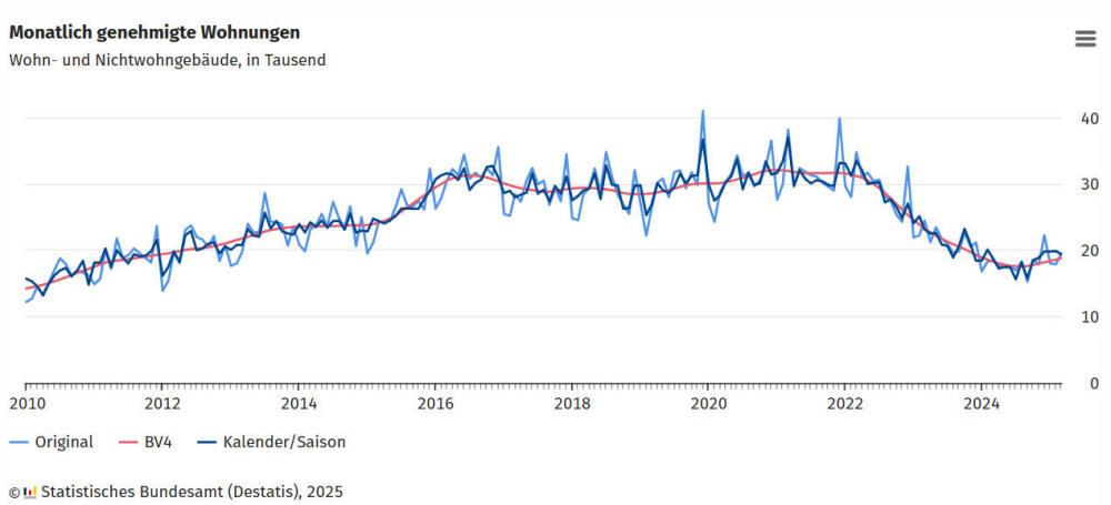 Baugenehmigungen für Wohnungen im März 2025: +5,8 % zum