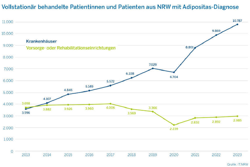 Adipositas vollstationär im Krankenhaus Behandelten gab es 2023 in