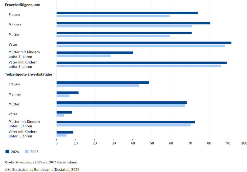 Teilzeitquote von Müttern seit dem Jahr 2005 kaum veränderte, stieg