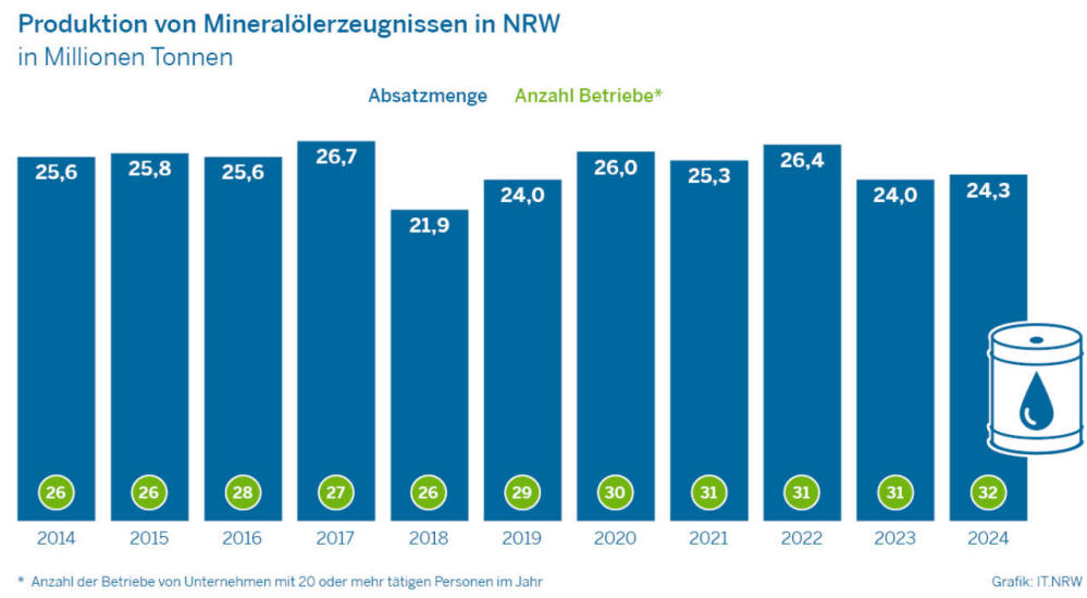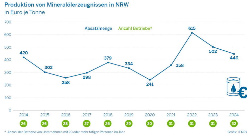 NRW-Industrie: Wert der produzierten Mineralölerzeugnisse 2024 um