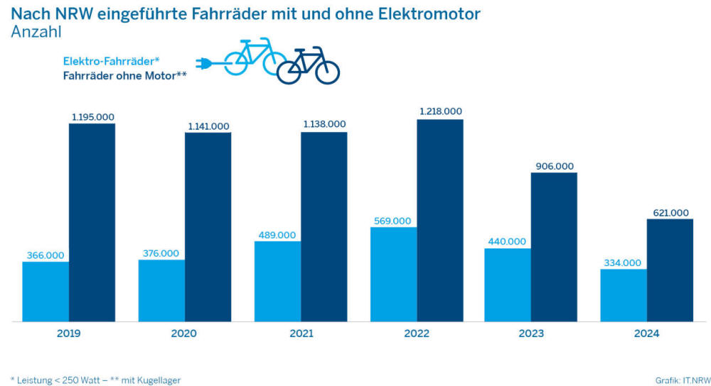 Fahrräder mit Elektromotor sind im Jahr 2024 nach NRW importiert