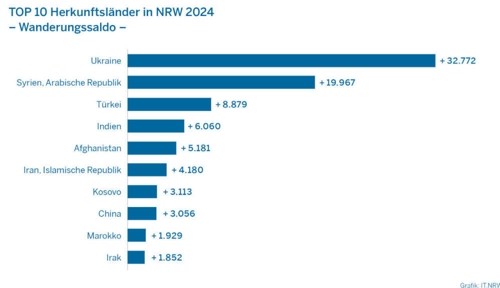 Ukraine mit einer Nettozuwanderung von +32.772 Personen. Gegenüber