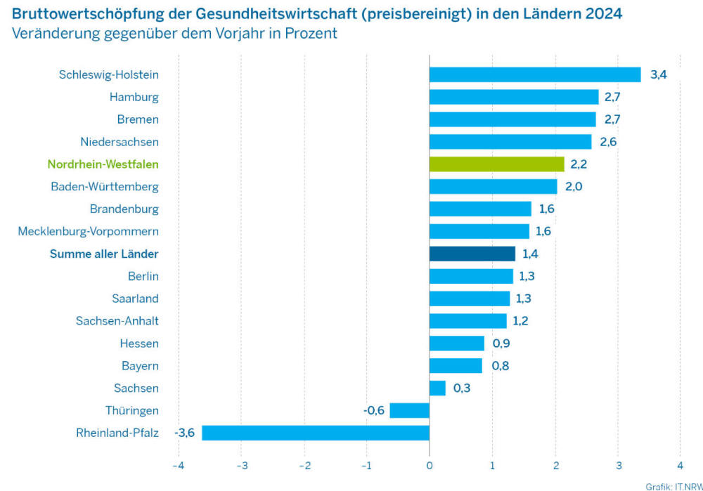 NRW: Gesundheitswirtschaft wächst 2024 um 2,2 %