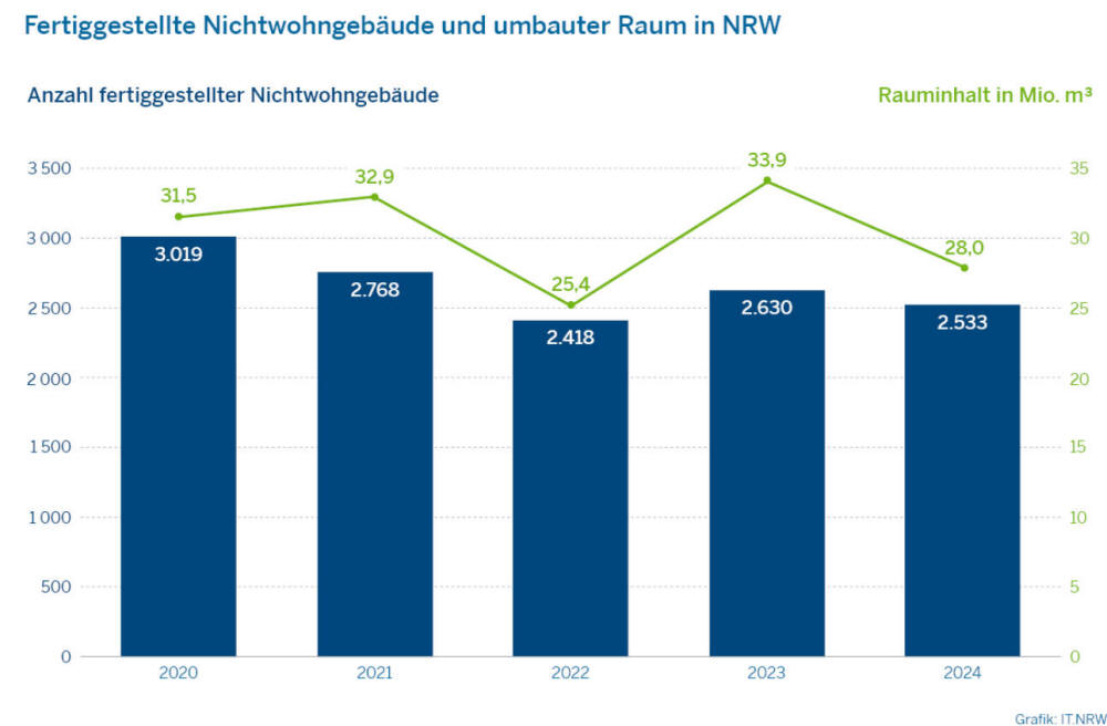 * 2.533 neue Nichtwohngebäude fertiggestellt *