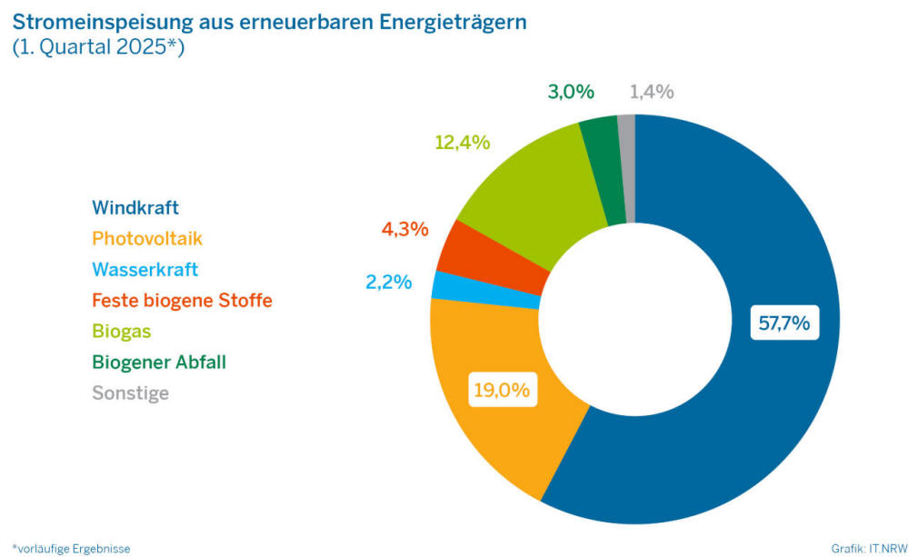 Windkraft dominiert mit einem Anteil von 57,7 % die erneuerbaren