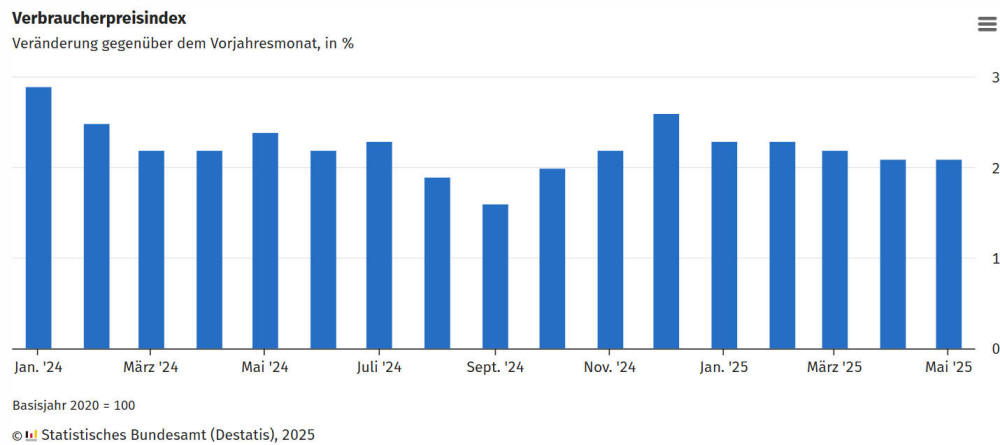 noch +0,5 % betragen. Im Mai 2025 erhöhten sich die Preise für