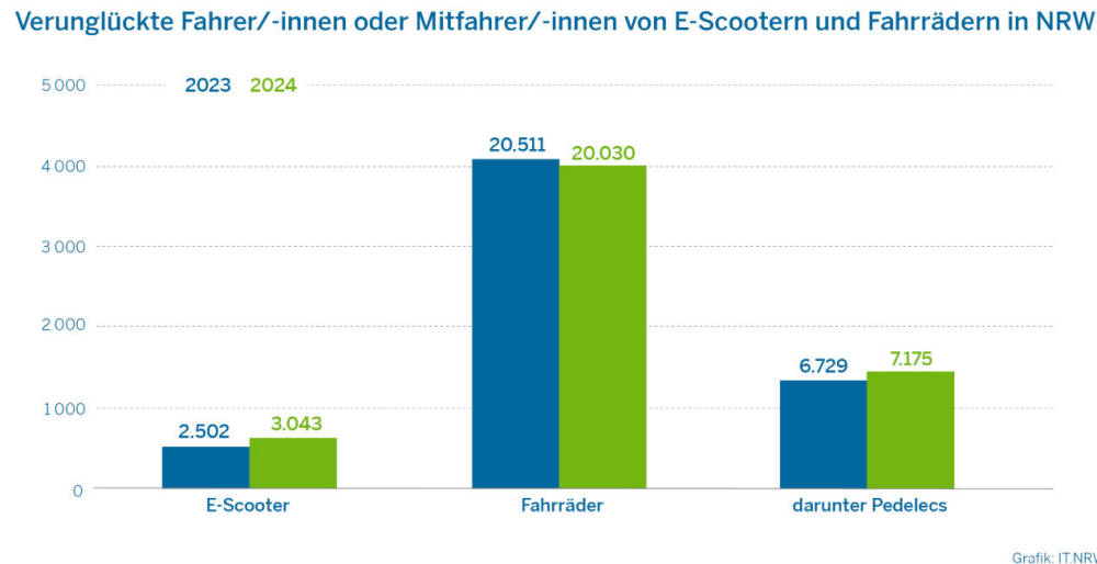 bzw. Mitfahrenden von Pedelecs lag 2024 in NRW bei 7.175. Das