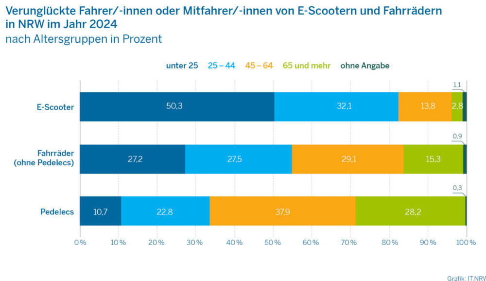 NRW: Über 20 % mehr verunglückte Personen mit E-Scootern