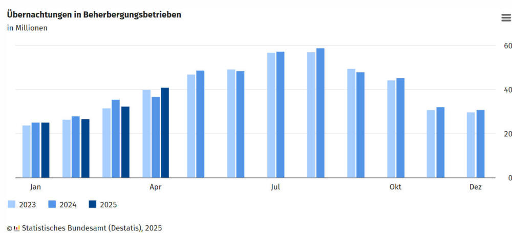Gästeübernachtungen, April 2025 41,0 Millionen +11,0 % zum