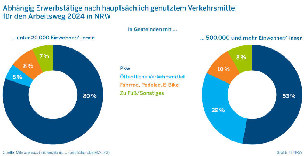sieben von zehn abhängig Erwerbstätigen in NRW ihren Arbeitsweg