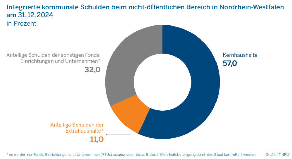 NRW-Kommunen: Schuldenanteil der Kernhaushalte an