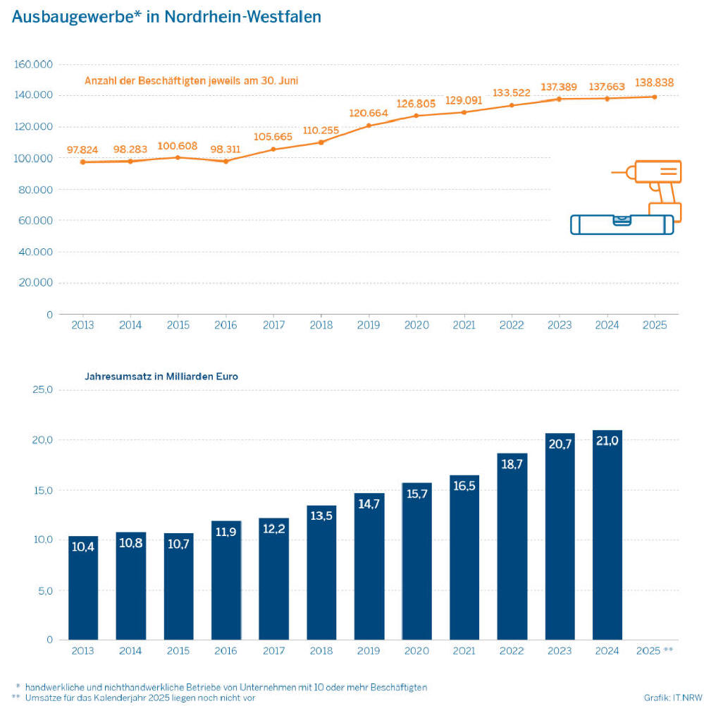 NRW-Ausbaugewerbe: Beschäftigung stieg zur Jahresmitte