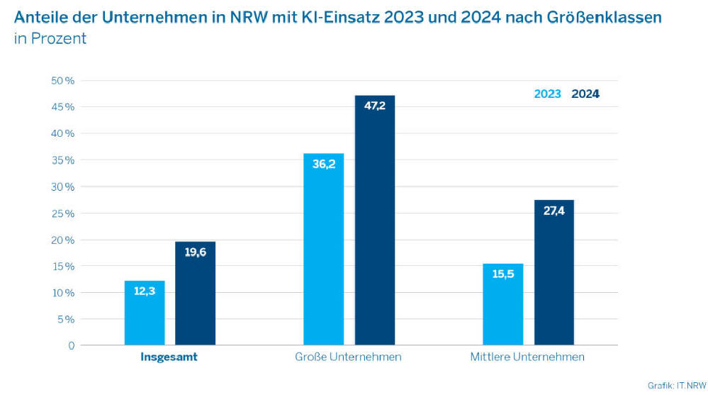 Der Anteil der KI-Nutzung in NRW insgesamt lag im Jahr