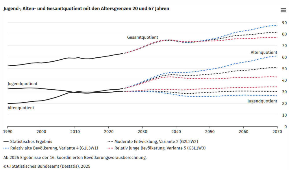 Bei einer moderaten Entwicklung der drei demografischen Komponenten