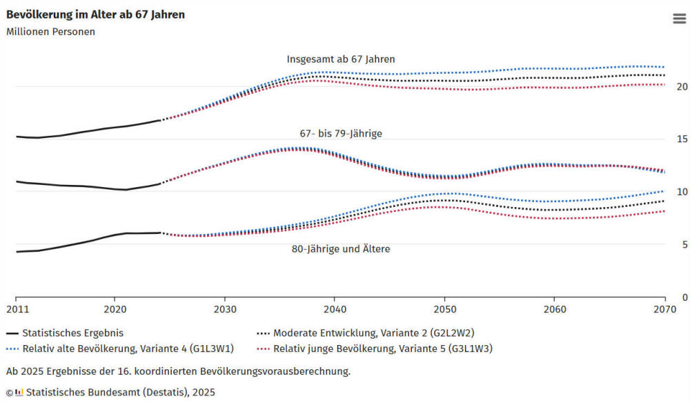16,3 Millionen oder rund 30 % mehr Seniorinnen und Senioren leben.