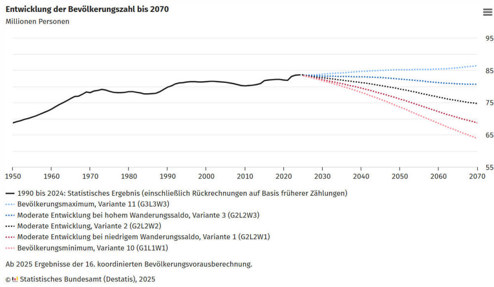 Deutschland aller Voraussicht nach weniger Menschen leben als heute.