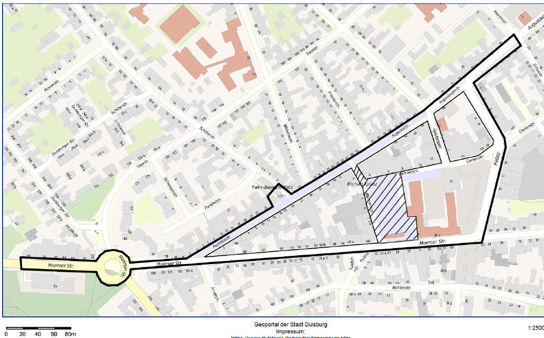 Moerser Straße, Bismarckplatz, Gartenstraße zwischen