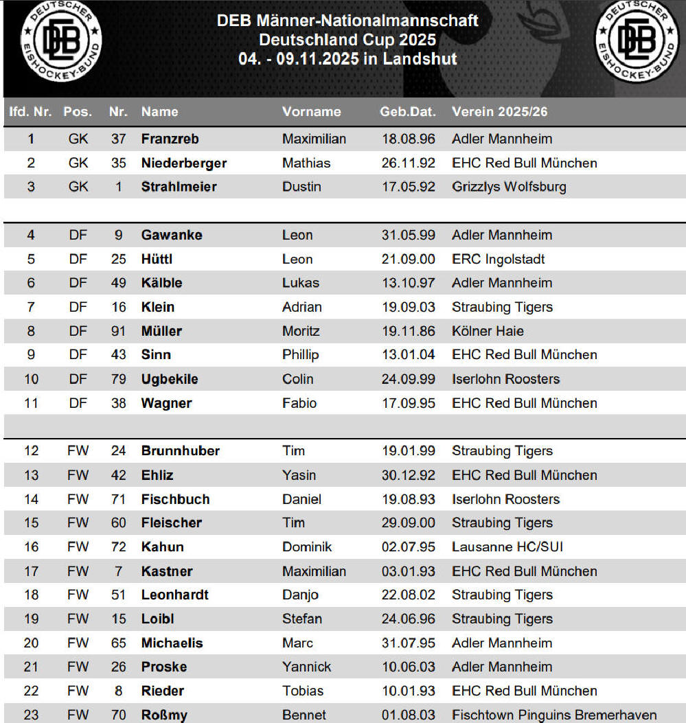 Landshut mit 25 Nationalspielern an. Am heutigen Mittwoch gab