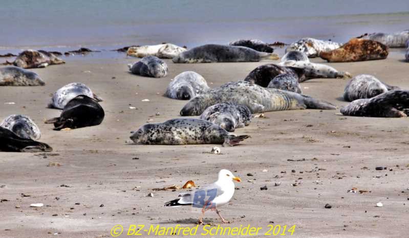 Seehunde und Robben am Strand der Düne Deck 5 ist das Sonnendeck, hier können die Gäste im