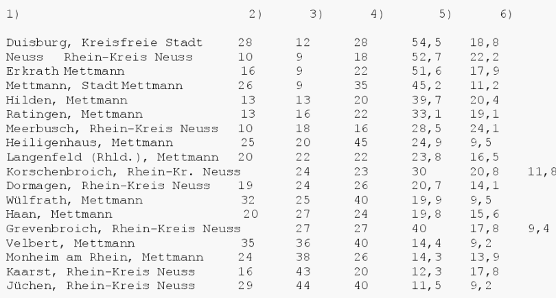 Duisburg um 31,5 Prozent erwartet (Ruhrgebiet: 31,3
