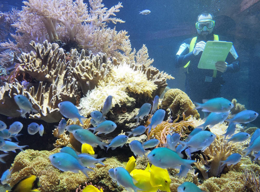 Tierpfleger im Aquarium erfasst den Tierbestand. Foto: Zoo